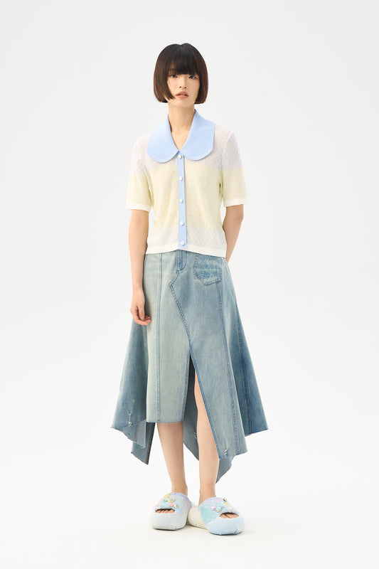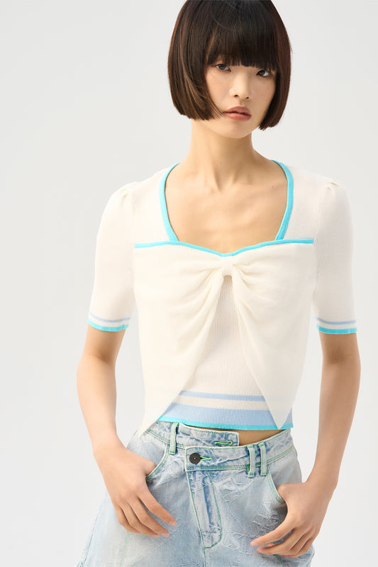 Bow Knot Edge Knitted Shirt