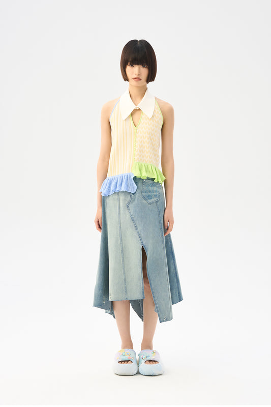 Asymmetric neck hanging knitted vest
